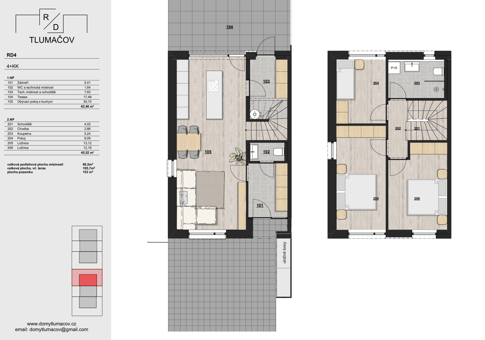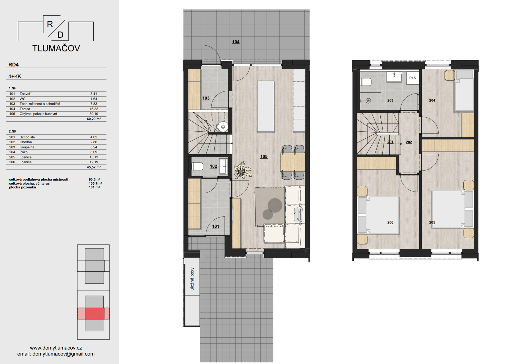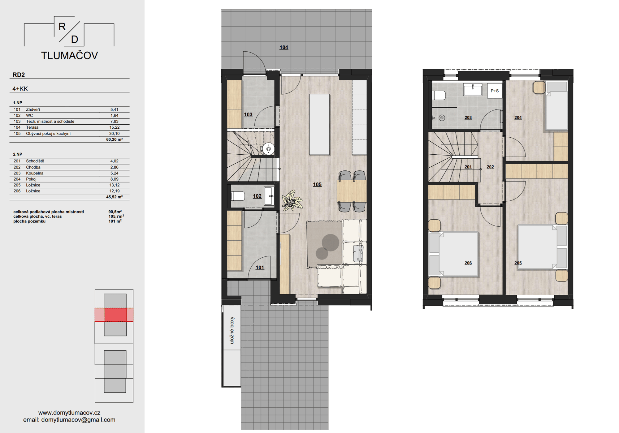Rodinné domy s dispozicí 4+KK, každý s vlastní zahradou a parkováním