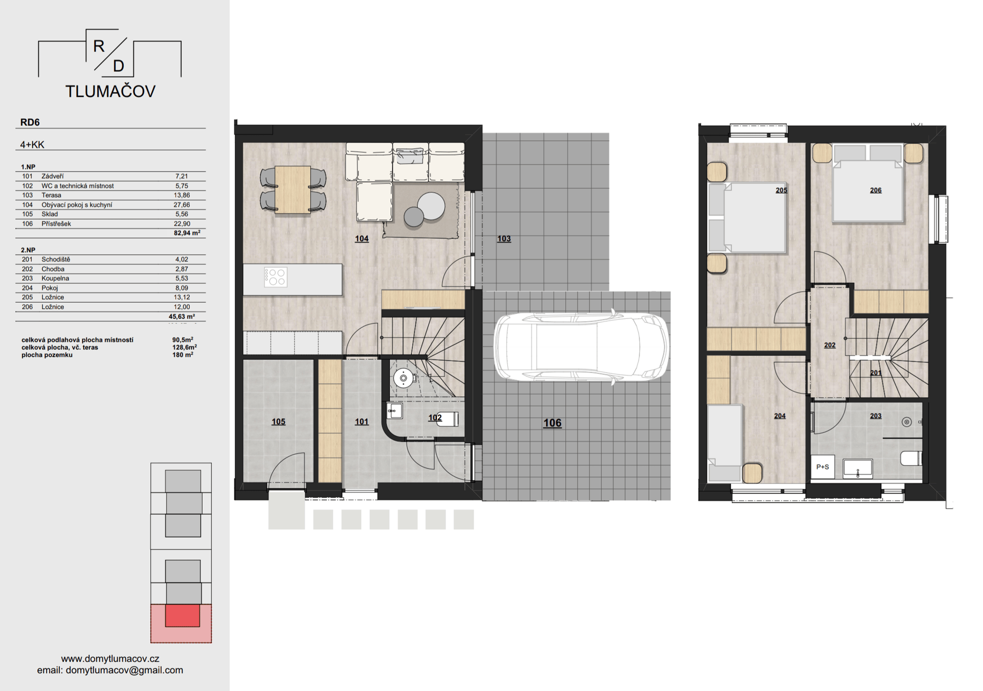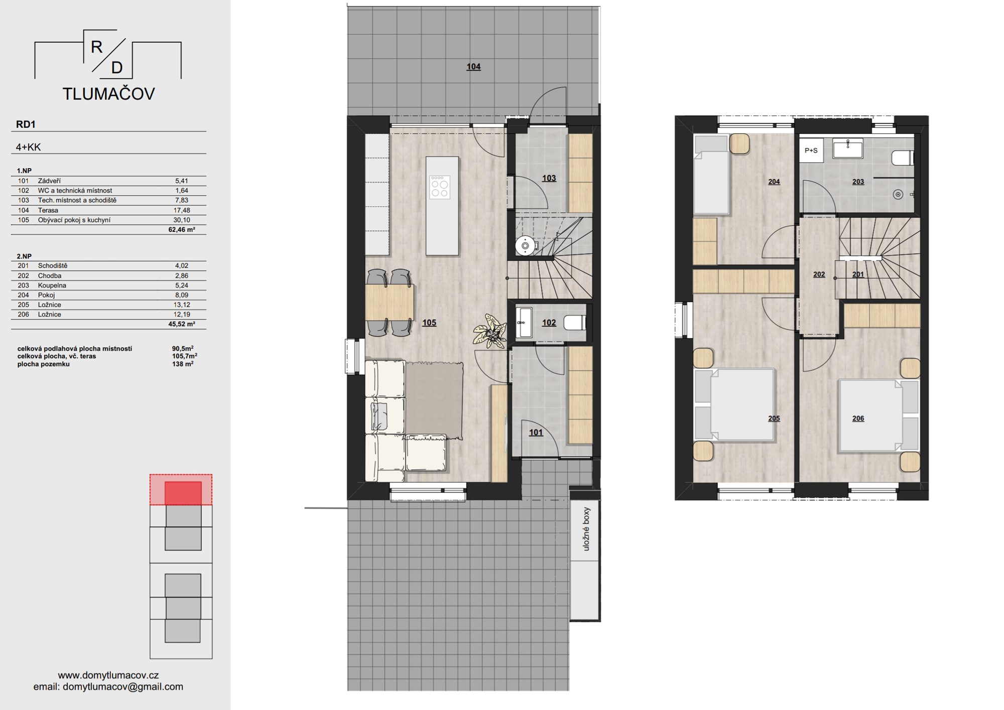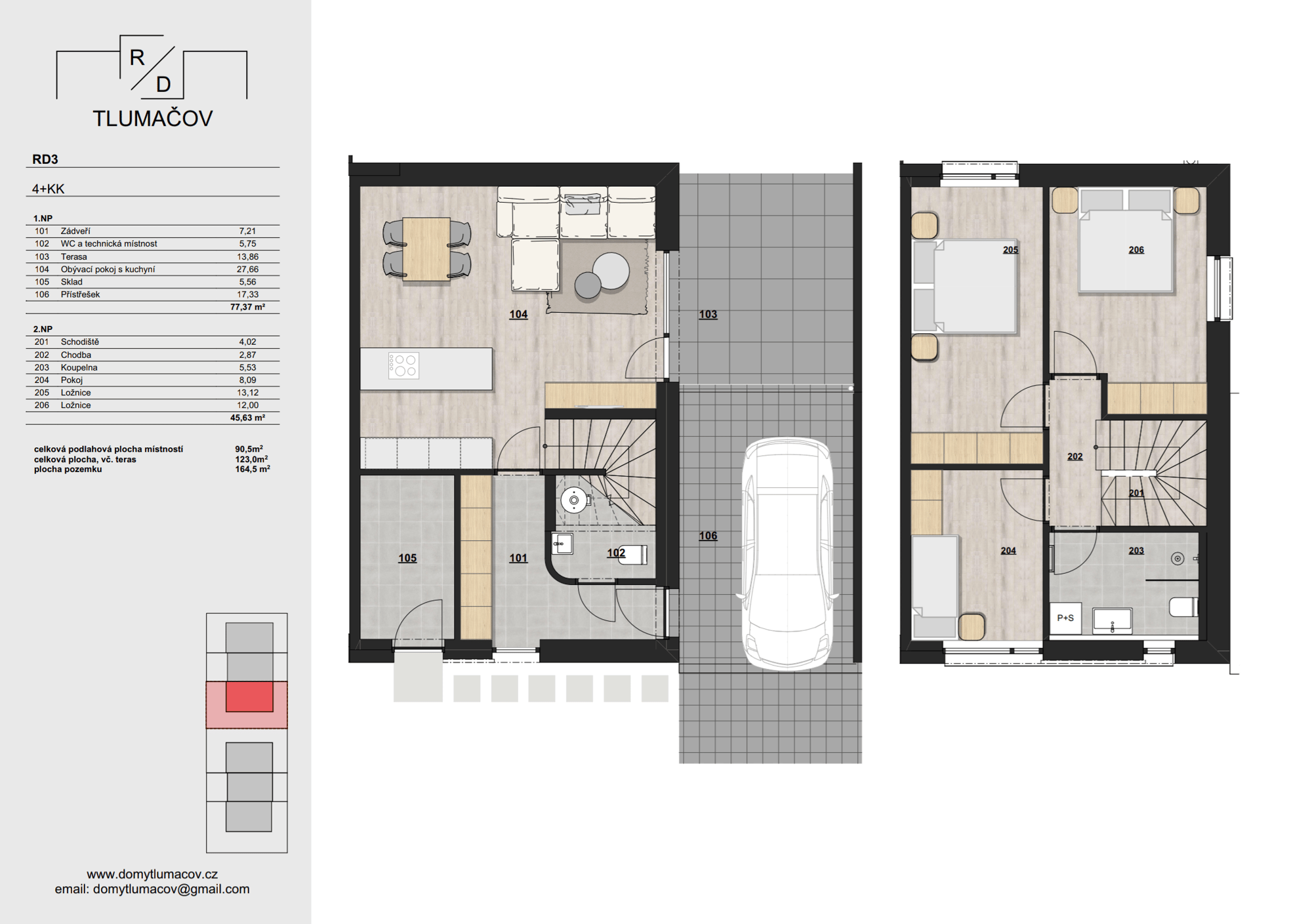 Rodinné domy s dispozicí 4+KK, každý s vlastní zahradou a parkováním