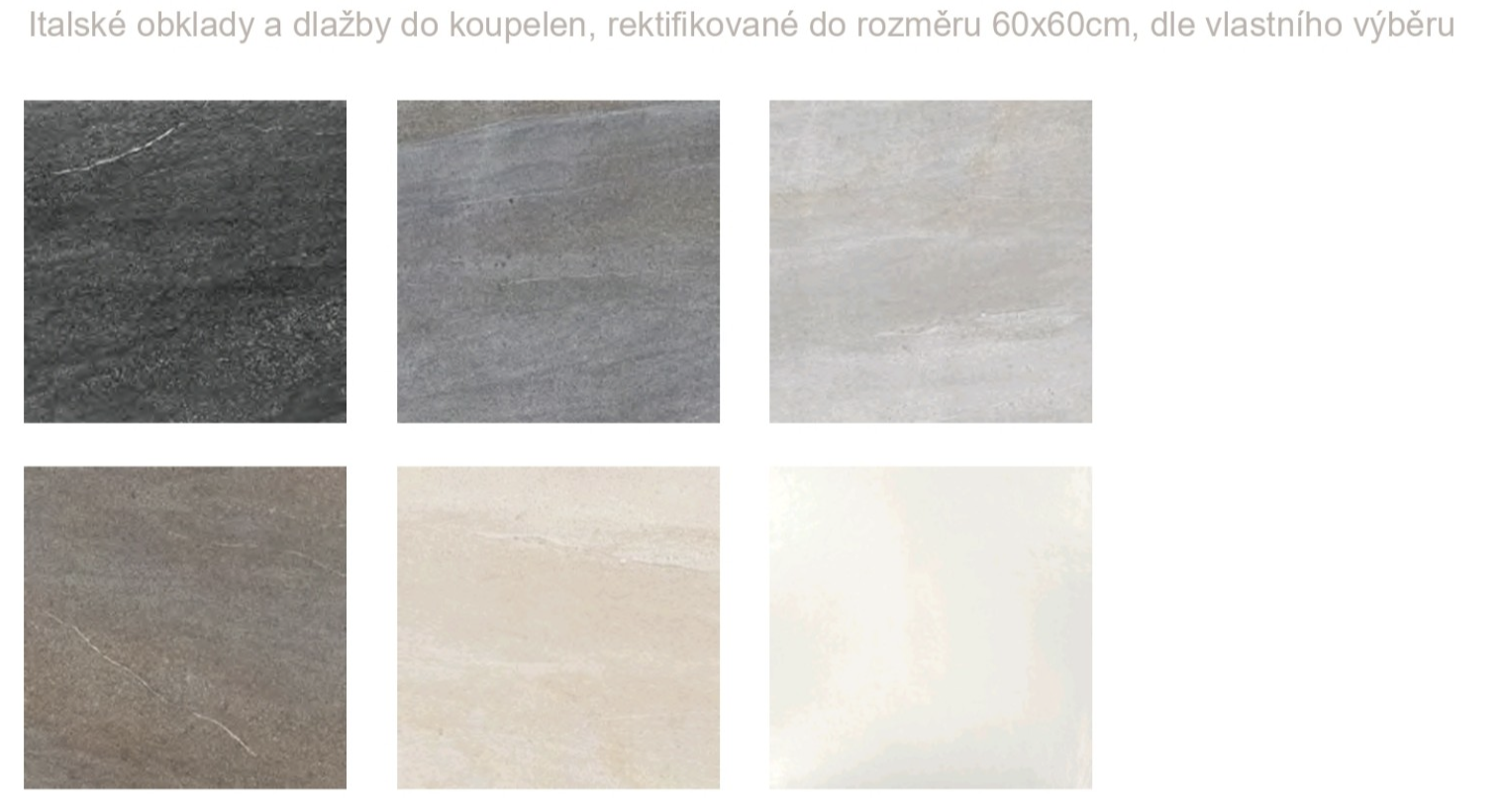 Do koupelen, rektifikované do rozměru 60x60cm dle vlastního výběru